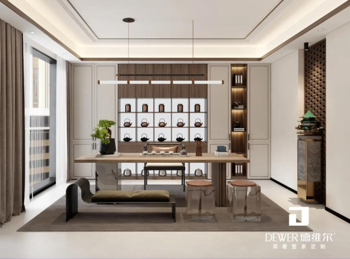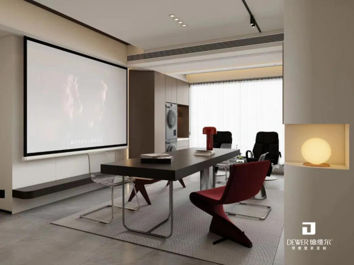 如果是小户型的开放式书房设计,最好还是通过屏风、玻璃、柜具摆放、地板抬高等方式等做软隔断,既增强了该区域的隐蔽性与独立性,还能空间呈现出隔而不断的层次美。