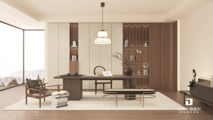书房的布局一般分为两种形式:一、一般在户型条件允许下,就单独设立一个房间作为书房,不仅可以保证空间内的隐秘性,而且满足了书房的功能性需求。
