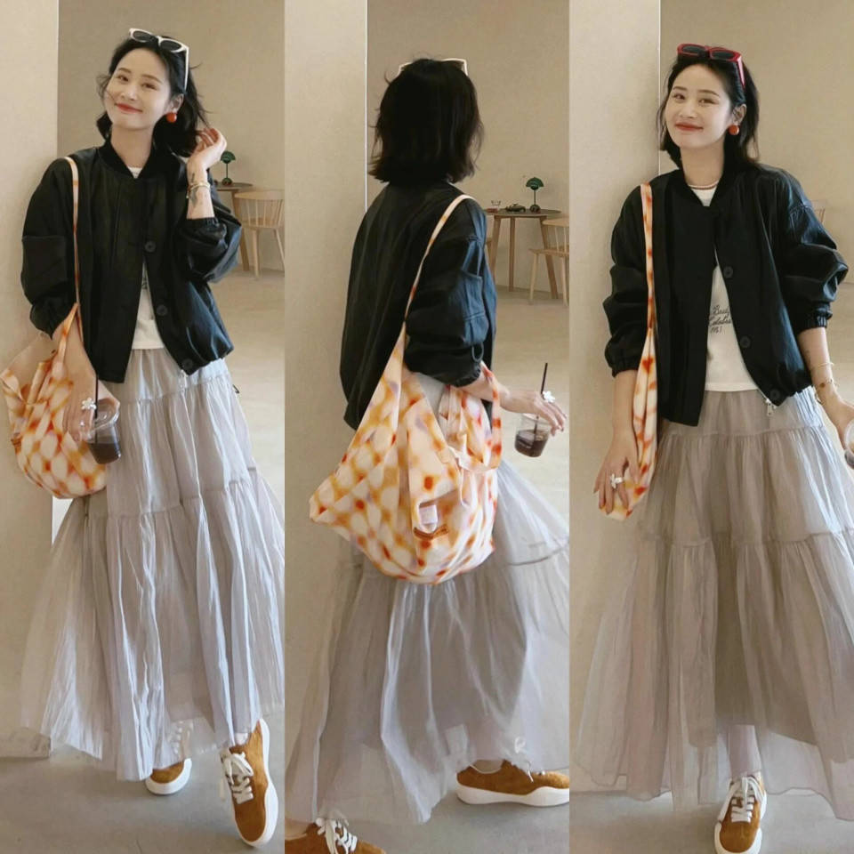 第三章节:小个点女衫的皮衣穿搭方法Tips①:黑皮衣+薄纱伞裙